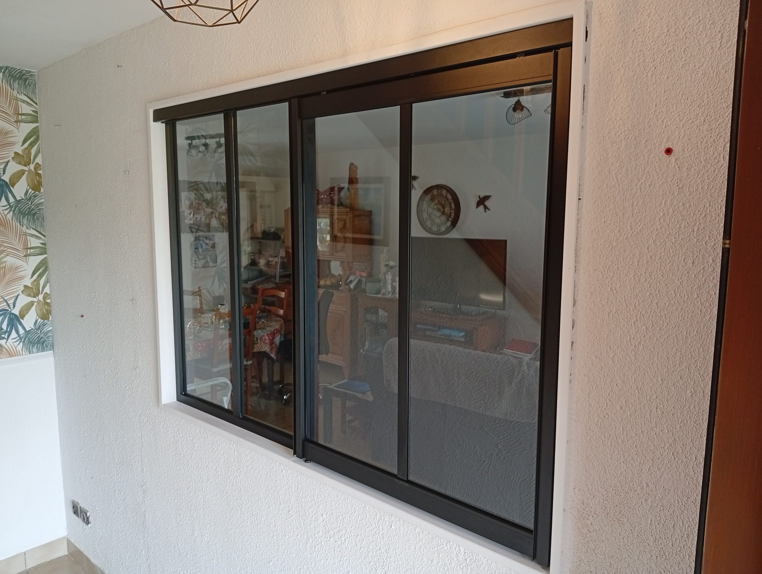 Cette verrière, créée sur mesure pour s’adapter parfaitement à l’ouverture existante, combine une section fixe et une section coulissante. Pour un confort d’utilisation supérieur, le coulissant est équipé d’un système de double amortissement, garantissant douceur et silence à chaque manipulation.