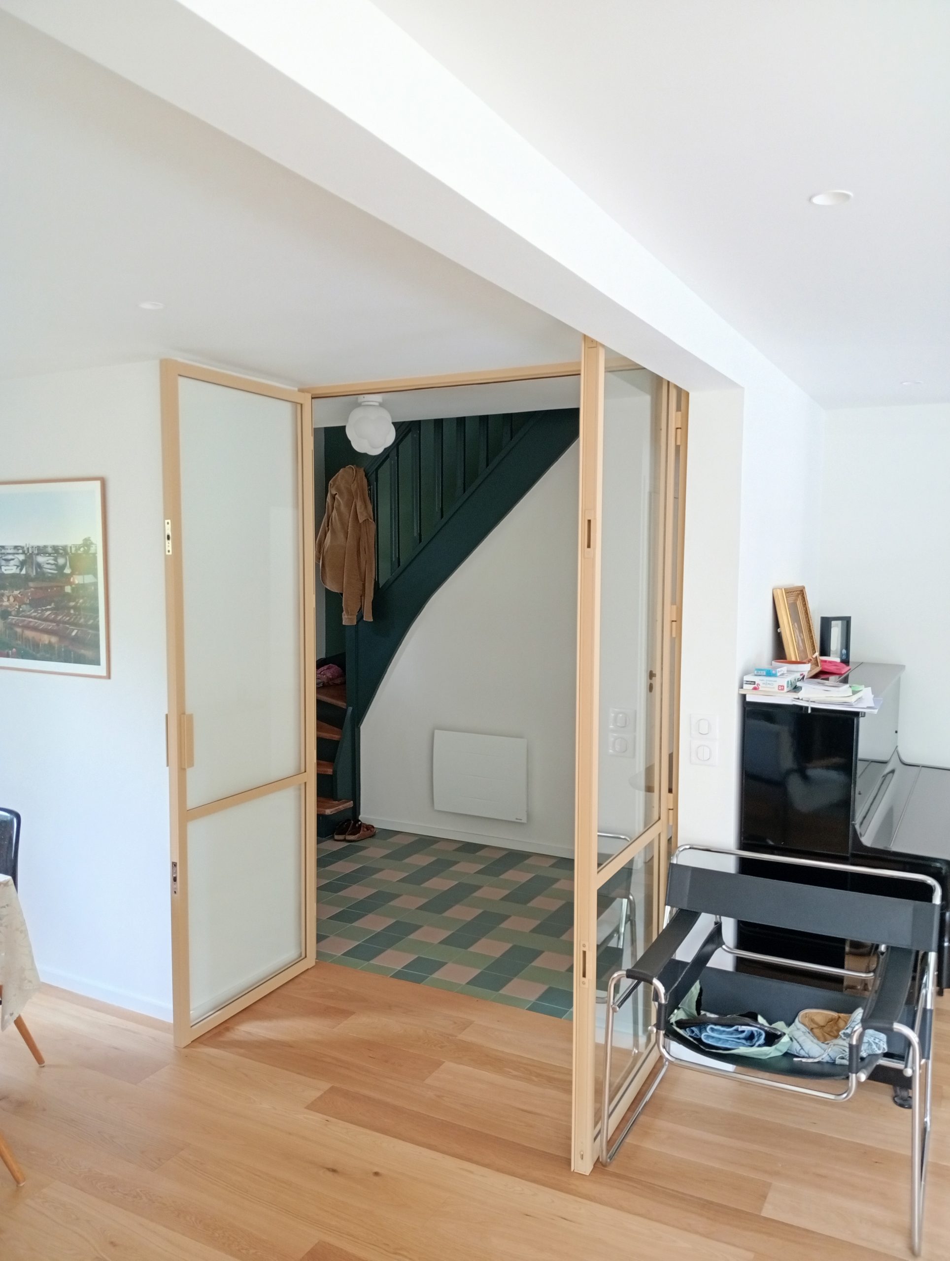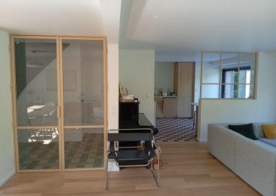 Enfin, la double porte battante et la verrière ont été installées chez la cliente en seulement 2 jours de pose, transformant son intérieur en un espace à la fois lumineux, chaleureux et unique.