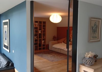 Bien plus qu’un simple passage, cette porte à pivot devient un véritable élément de design au cœur de l’intérieur. Une solution à la fois esthétique et fonctionnelle, pensée pour sublimer l’espace.